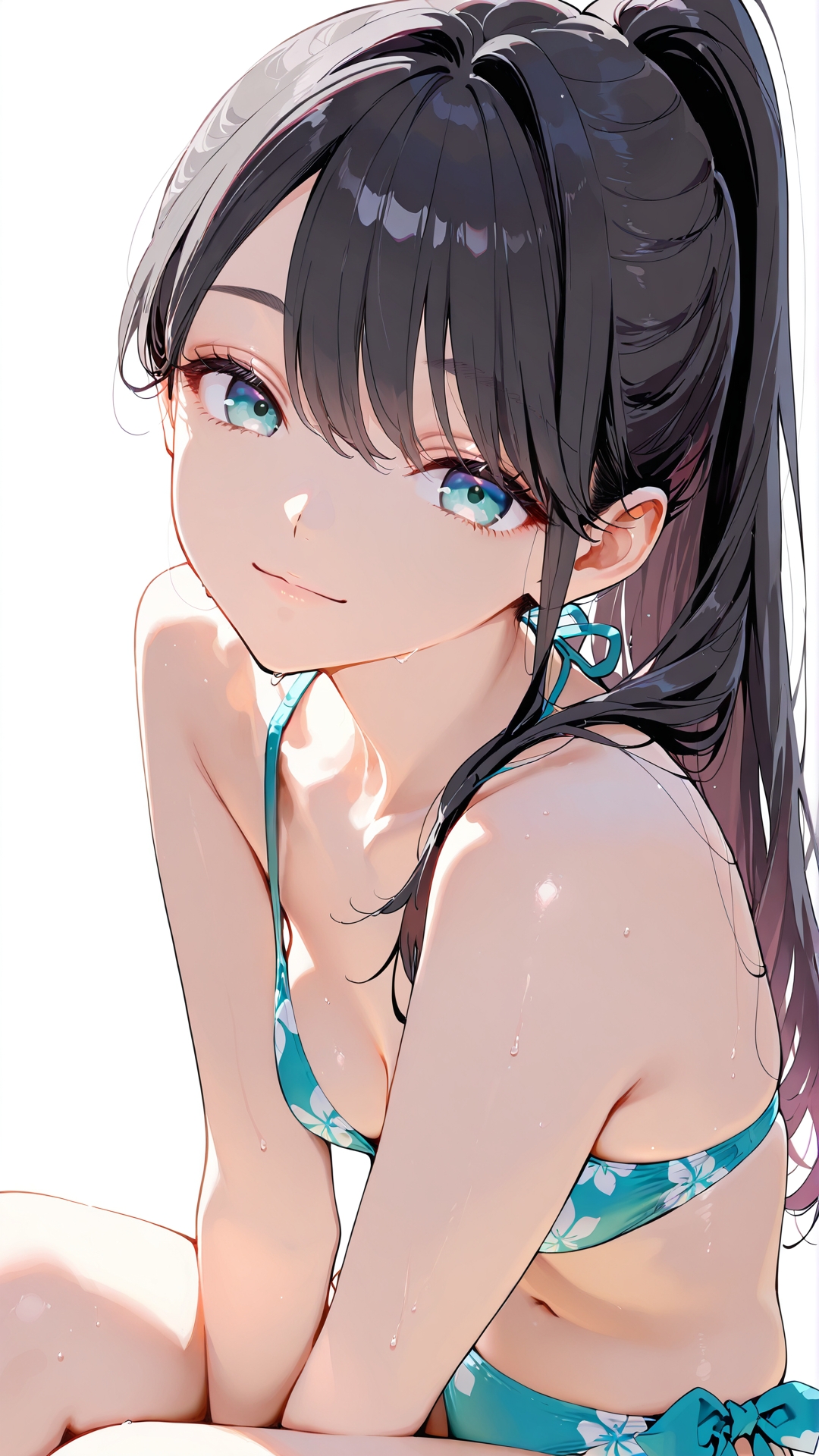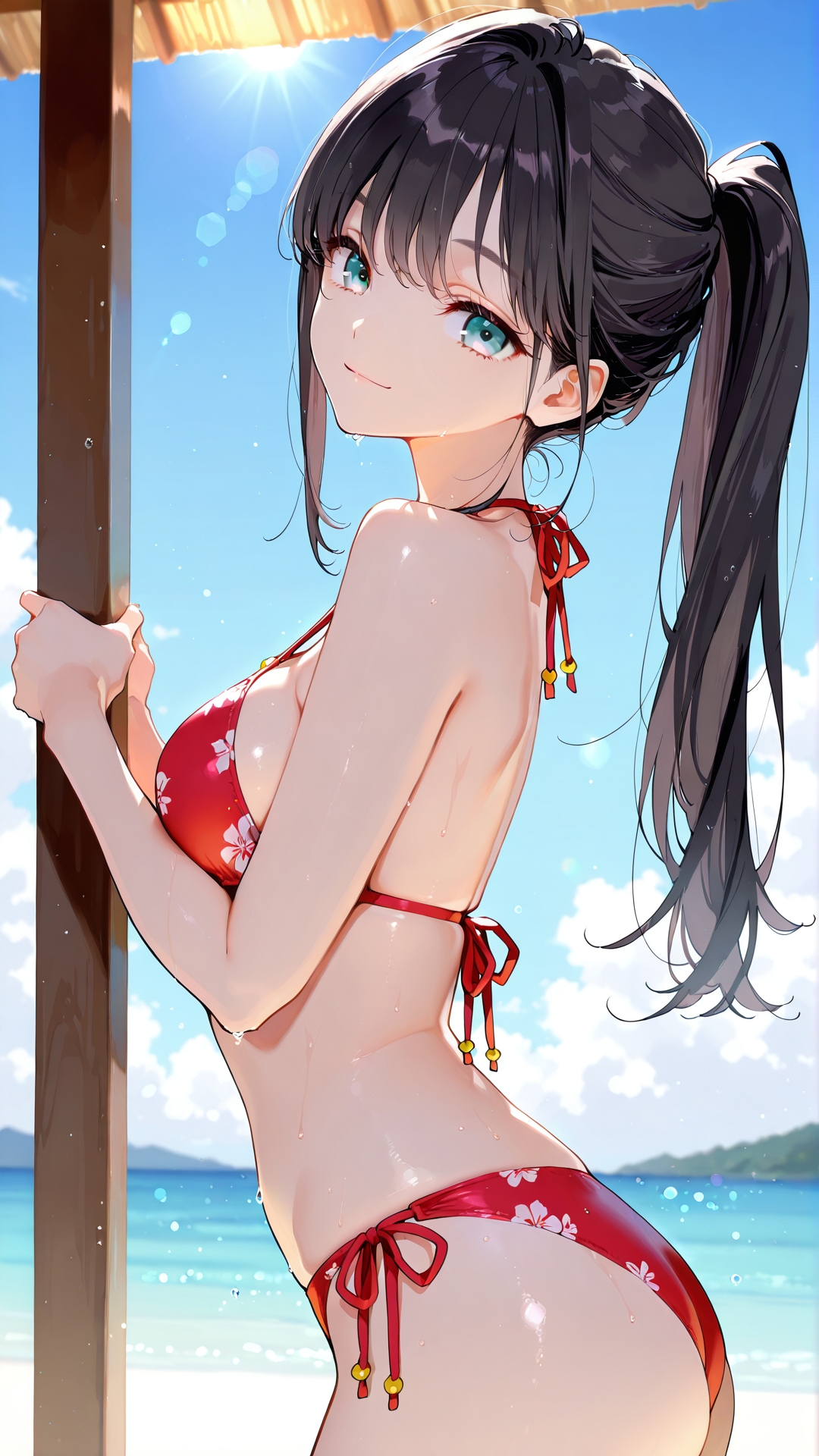 黒髪ロングのポニテ水着と浜辺でセックス